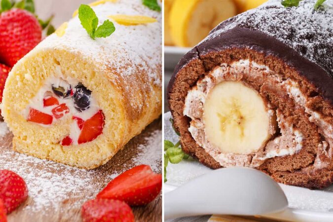 Po upływie określonego czasu wyjmujemy wypiek z piekarnika i natychmiast przykrywamy wilgotnym ręcznikiem. Więc ciasto będzie łatwiej ulegać w procesie skręcania. Rozmazujemy ciasto z jednej strony nadzieniem do smaku i szybko robimy rolkę. W każdym razie okaże się niesamowicie smaczna!