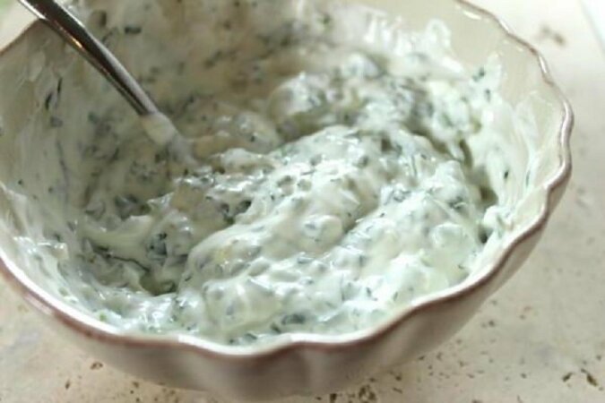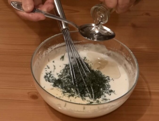 Naleśniki z cukinii są szczególnie smaczne ze śmietankowo-czosnkowym sosem. Do jego przygotowania wymieszaj 250 ml gęstej śmietany ze zmiażdżonym czosnkiem i posiekanym koprem.