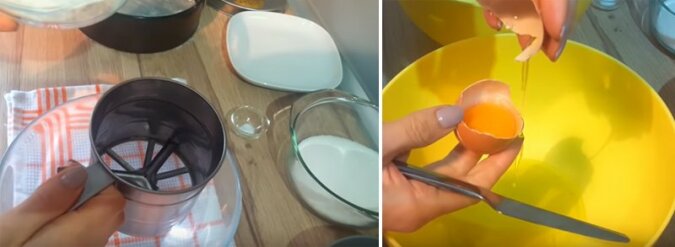 W osobnej misce należy utrzeć żółtka z pozostałym cukrem (lub cukrem pudrem), a następnie ubić na puszystą białą pianę. Dodajemy skórkę z cytryny lub wykorzystujemy inny aromat.