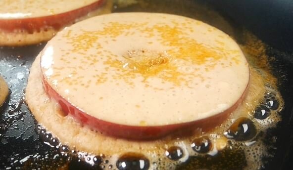 Gdyby kiedykolwiek nużyły Cię zwyczajne racuchy bądź jakiekolwiek placki z jabłkiem, użyj tego przepisu, aby zaoszczędzić co nieco czasu. Jeśli usmażysz jabłka pokrojone w plastry, zachowasz ich wszelkie wartości takie jak słodycz, delikatność oraz chrupkość. Jedynym czego potrzebujesz jest drylownica, którą łatwo znajdziesz we wszystkich supermarketach.