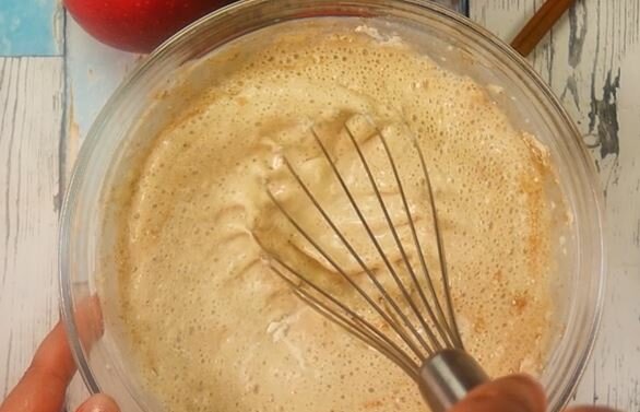 Namocz jabłka w cieście oraz smaż na nie za dużym ogniu, dopóki będą złociste.