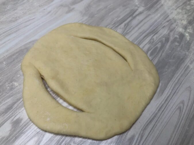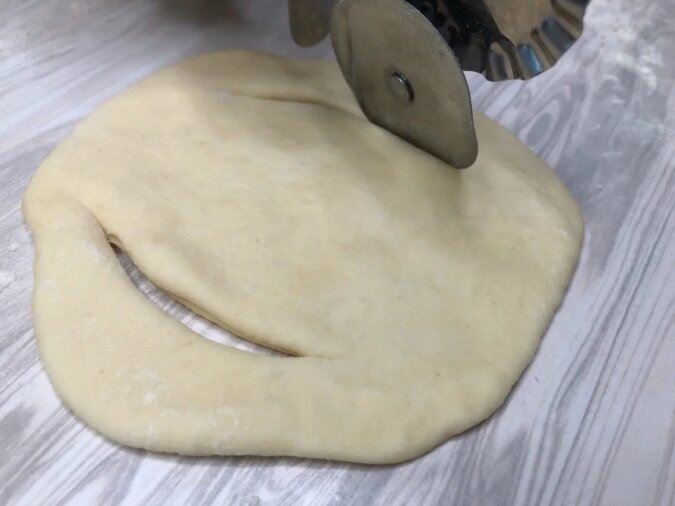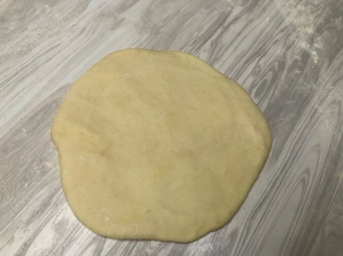 Należy rozwałkować ciasto w formie koła o średnicy 10-12 cm.