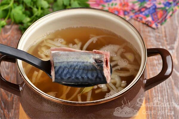 6. Gdy woda się zagotuje, dodajemy kawałki makreli. Ponownie doprowadzamy do wrzenia, przykrywamy patelnię pokrywką i gotujemy 10 minut w średniej temperaturze. To już ładnie pachnie.