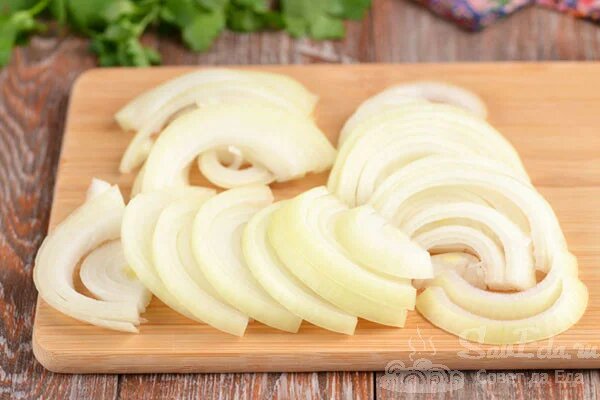 3. Pokrój cebulę na niezbyt cienkie pół-pierścienie.