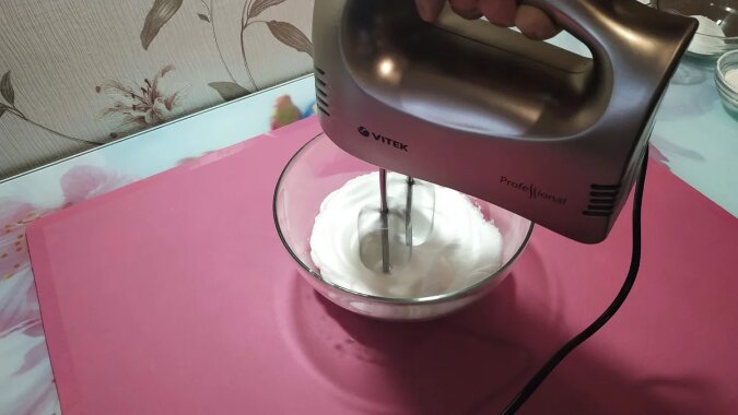 Ważne! Białka mogą być nie ubijane, wtedy rzeczywisty czas gotowania wyniesie 2 minuty (bez czasu na piekarnik), ale z bitymi białkami deser okazuje się bardziej przewiewny i delikatny.