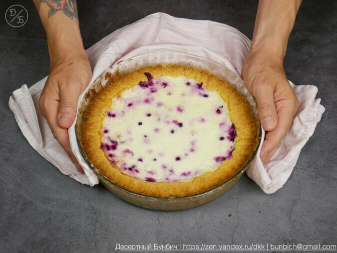 Kruche ciasto upiekło się idealnie, lecz pozostało w miarę mokre. A delikatne nadzienie z kwaśnej śmietany sprawia, że smak jagód tego ciasta jest wyśmienity. Życzymy wszystkim smacznego!