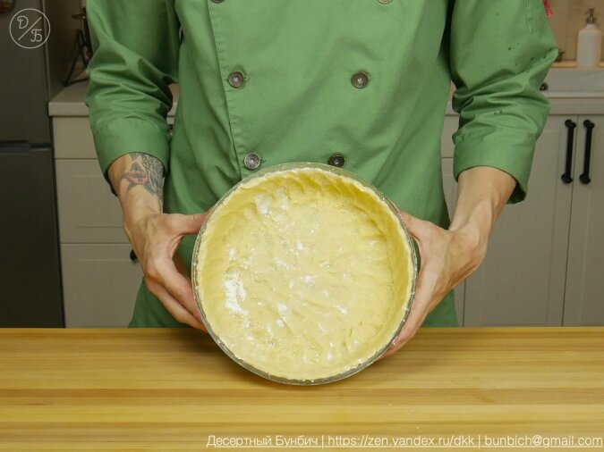 Naczynie do pieczenia dokładnie smarujemy masłem, a następnie ciasto rozprowadzamy na całej powierzchni ładnie równając. Teraz wkładamy do zamrażarki. Teraz zajmujemy się przygotowywaniem nadzienia.