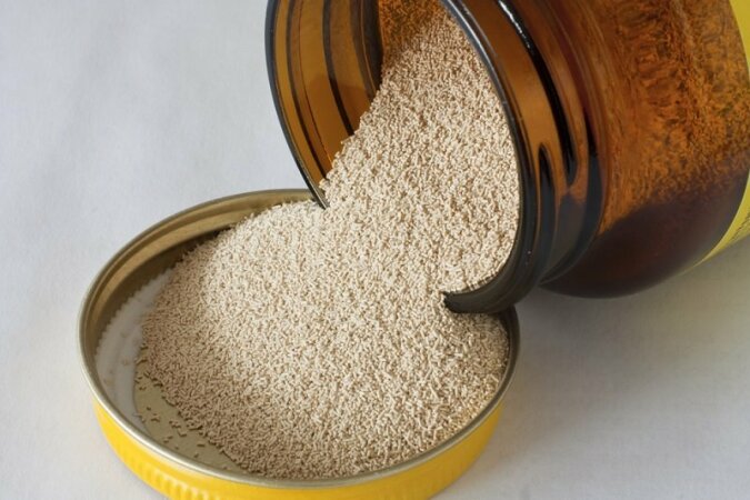 1. Na początek suche drożdże należy zalać wodą i pozostawić do rozpuszczenia na 15 minut.