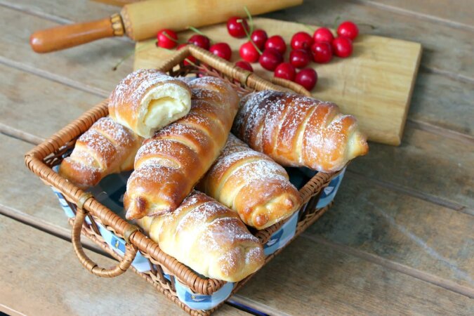 Delikatne, pachnące z bardzo smacznym kremem bułeczki są gotowe. Gorąco polecam.
