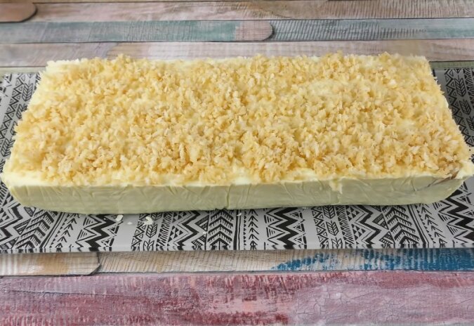 Posyp ciasto wiórkami kokosowymi i wstaw do lodówki na 10-12 godzin.