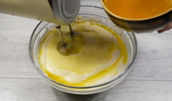 Zmniejsz prędkość miksera i powoli wlewaj galaretkę.