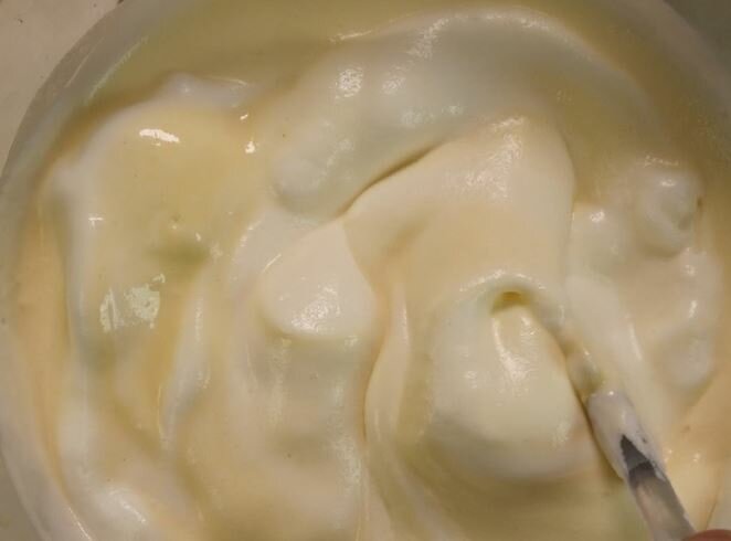 6. Wbij do masy białka, a następnie przelej na małą balszkę lub tortownicę.