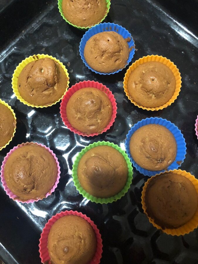Babeczki wskładamy do piekarnika rozgrzanego do 180 stopni Celsjusza na 35 minut.