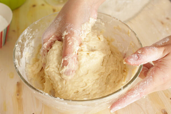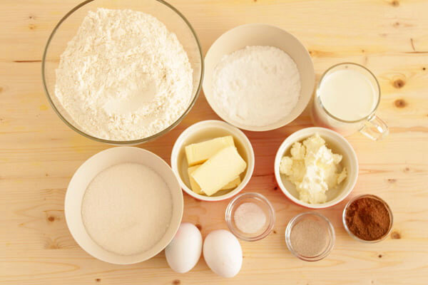Podgrzej trochę mleko, dodaj łyżkę cukru i drożdży, pozostaw na 10-15 minut. Podgrzej trochę masło i ubij z cukrem. Do tej masy, jeden po drugim, dodaj jajka, nadal ubijając. Następnie dodaj drożdże, sól i dobrze wymieszaj, aż masa będzie gładka. Dodaj mąkę i ugniataj ciasto przez co najmniej 10 minut, ciasto będzie kruche i miękkie. Ciasto zostawiamy na godzinę.