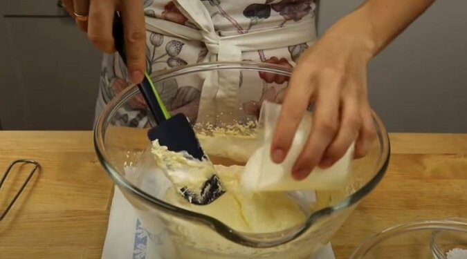 2. Ubij mikserem zmiękczone masło z cukrem i cukrem waniliowym. Masa powinna rozjaśnić się i nabrać objętości.