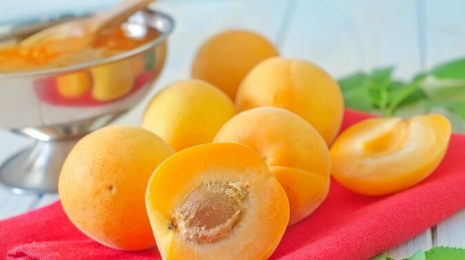 1. Morele umyj, osusz, podziel na pół.