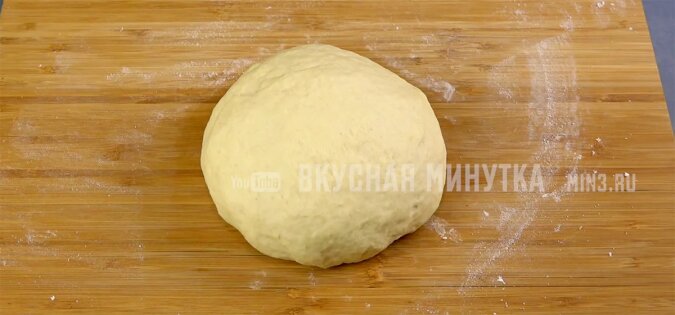 Zagniatam ciasto. Nie powinno kleić się do dłoni. Jeśli jest bardzo lepkie, możesz dodać trochę mąki. Ale lepiej zwilżyć ręce olejem roślinnym podczas wyrabiania ciasta - w ten sposób weźmiemy mniej mąki, a wyroby będą pulchniejsze.