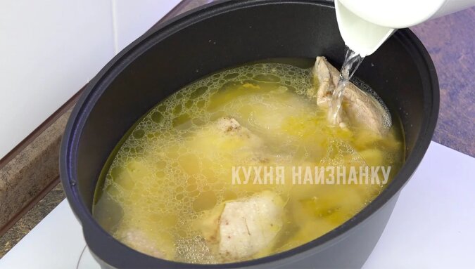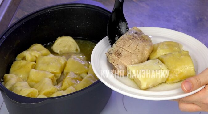 Następnie dolewam wody (tak, aby woda przykryła kaczkę, a nawet była trochę wyżej). Znowu przykrywam pokrywką i duszę na małym ogniu przez mniej więcej 40 minut. Jeśli gotujesz kurczaka lub indyka, nie trzeba długo dusić!