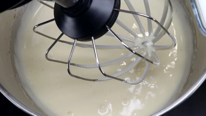 1. Na początku należy ubić jajka z odrobiną soli aż do uzyskania bujnej objętości. Zatem trzeba dodać cukier, a następnie kontynuować ubijanie aż masa zmieni kolor na jasny.