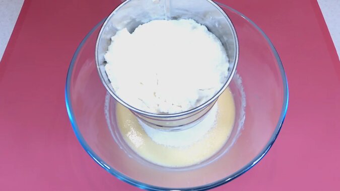 Teraz należy przesiać mąkę. Należy ją dodawać stopniowo, w 2-3 krokach, aby ciasto się nie „zapychało”. Z podanej w przepisie ilości należy zostawić trochę mąki do posypania. Zagniataj ciasto przez 5 minut.
