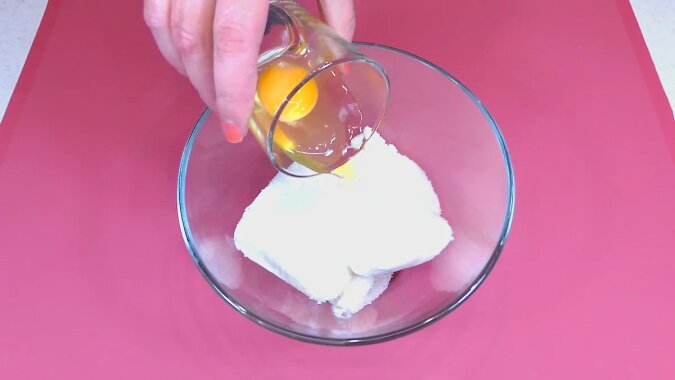 Kiedy ciasto „odpoczywa”, przygotuj nadzienie. Dla tego używam tłusty i miękki twaróg. Do twarogu dodaj sól, jajko, cukier, cukier waniliowy i skrobię. Wszystko dobrze wymieszaj, aby nie było grudek. Masę można zmiksować blenderem ręcznym. Mój twaróg był delikatny i zrobiłam to po prostu łyżką.