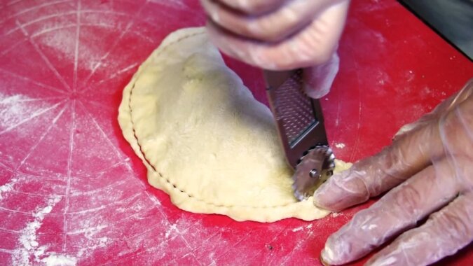 5. Brzegi ciasta ścisnąć palcami, obciąć nożem z kręconym kółkiem.