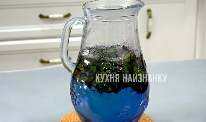 Liście bazylii zalewam wrzątkiem. Kolor wody zmieni się najpierw na niebieski, a następnie na głęboki fiolet. Liście wówczas zmienią kolor na zielony.