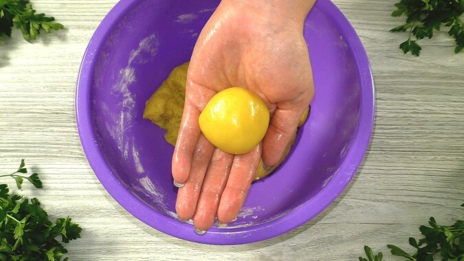 Z ciasta formujemy kulkę wielkości orzecha włoskiego.
