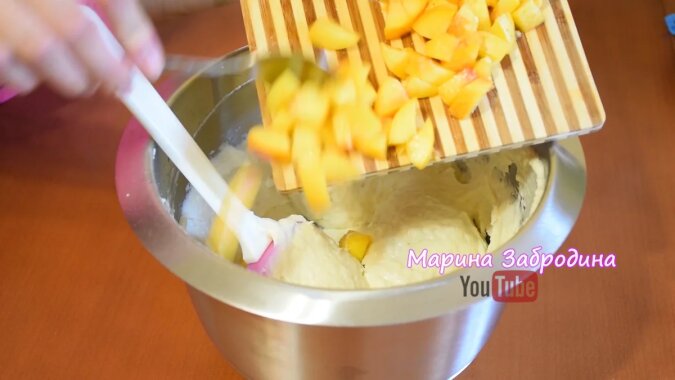 6. Gdy ciasto będzie gotowe, dodaj drobno posiekane morele i dobrze wymieszaj.