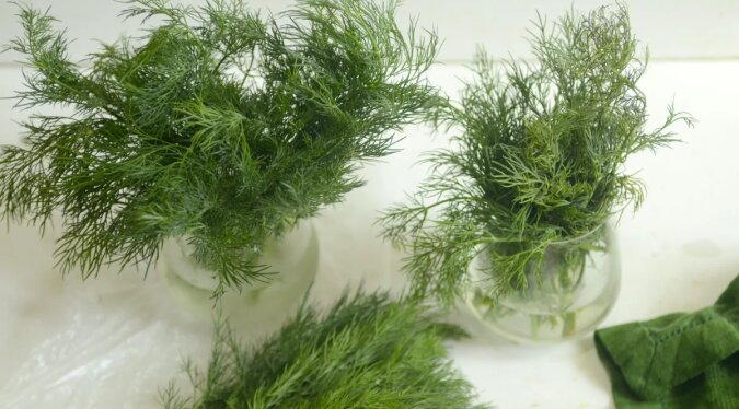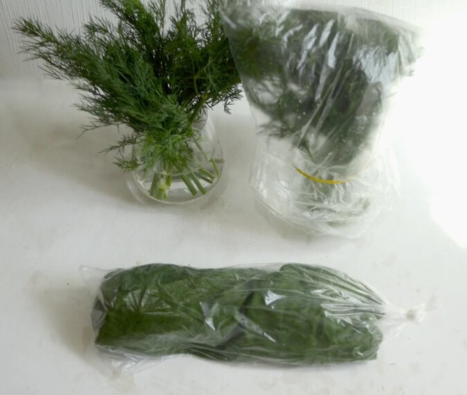 Znalazłam więc idealny sposób na przechowywanie koperku, jeśli chcesz, aby był świeży przez długi czas: zawiń go w wilgotną szmatkę, a następnie włóż do torby i przechowuj w lodówce.