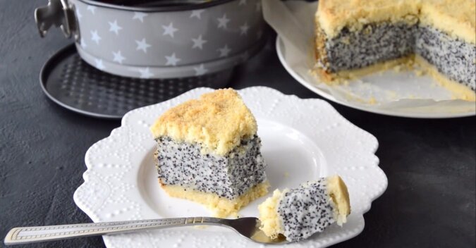 To danie jest również nazywane niemieckim sernikiem makowym. Ma dużo miękkiego i aromatycznego nadzienia i wcale nie ma nadmiaru biszkoptu. Więc ten deser okazuje się wystarczająco zdrowy.
