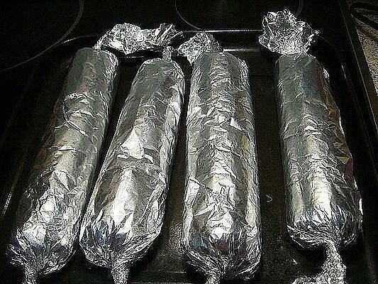 Nagrzewamy piekarnik do 180 stopni Celsjusza, zatem wkładamy kiełbaskę i pieczemy przez ok. 1 godzinę.