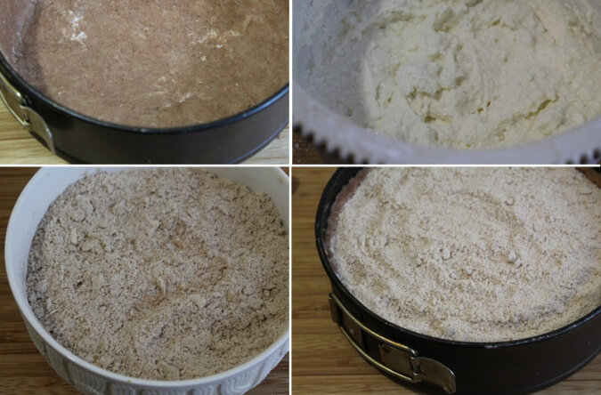Aby przygotować posypkę, wszystkie składniki trzyj dłońmi, aż powstaną okruchy.