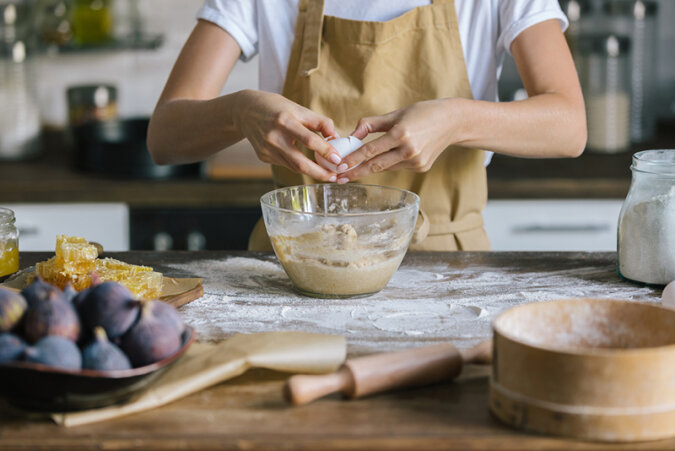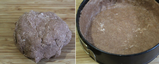 Rozwałkuj ciasto na stole, a zatem ostrożnie włóż ciasto do formy posmarowanej olejem. Ciasto musi być równomiernie rozmieszczone na dnie i na ścianach formy do pieczenia.