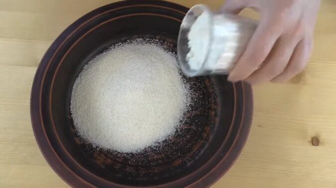 W tym czasie zakończymy przygotowanie, dodamy proszek do pieczenia do niewielkiej ilości kaszy manny (miksujemy). Dodaj kilka łyżek oleju roślinnego na miękkiego masła.