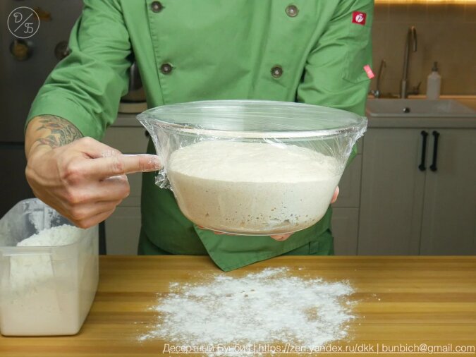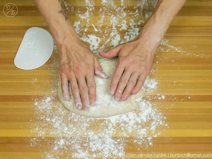 W tym czasie ciasto wyrosło prawie 2 razy. Położyłem go na stole pokrytym mąką.