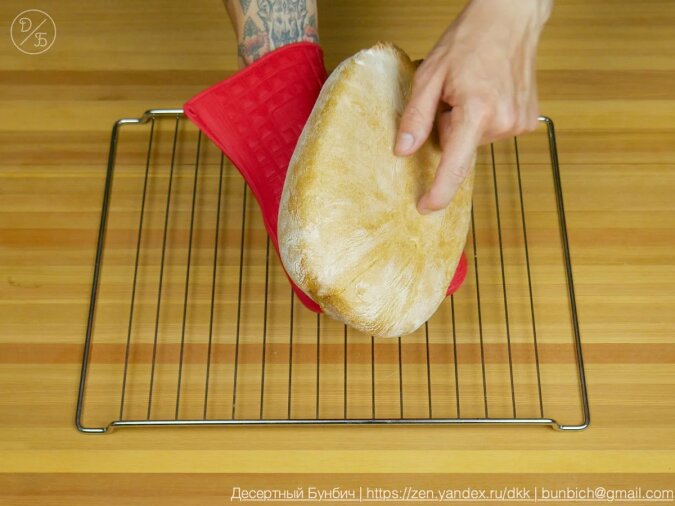 Po upieczeniu położyć chleb na ruszcie i pozostawić do całkowitego wystygnięcia. Nie należy od razu jego jeść. Najlepiej poczekać, aż wilgoć wewnątrz chleba była równomiernie rozprowadzona. Zobacz, jak wygląda kawałek chleba.