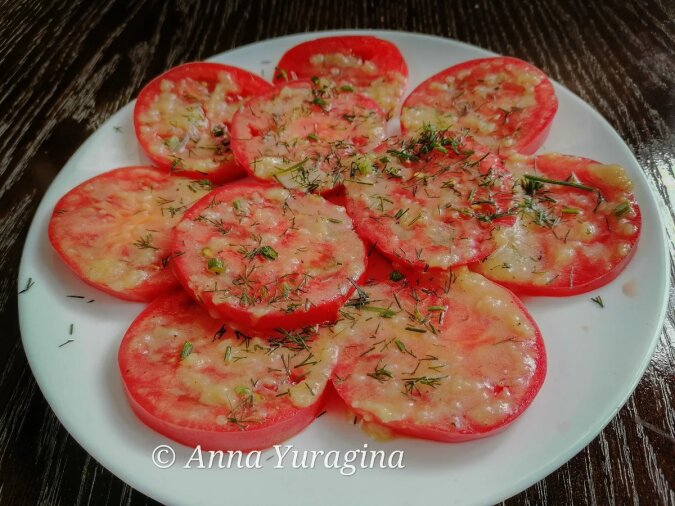 To wszystko. Pyszne i aromatyczne pomidory marynowane są gotowe w zaledwie 10 minut. Możemy już podawać tę pyszną przystawkę.