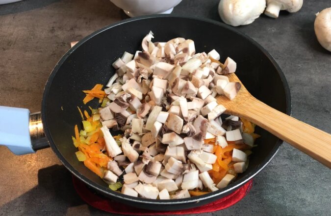 Nawiasem mówiąc, często gotuję z grzybami leśnymi, na przykład z borowikami lub kurkami, ale tym razem miałam ochotę na pieczarki.