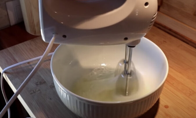 Białka ubij mikserem do uzyskania gęstego kremu, a następnie przenieś do wspólnej miski.