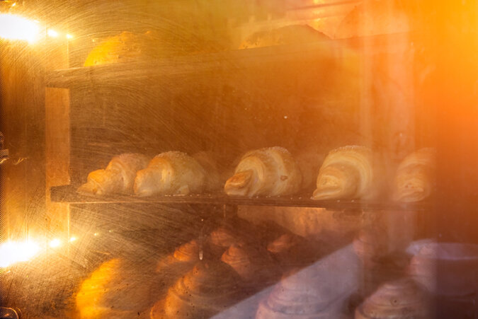 Zanim wstawisz blachę do piekarnika, każdą bułeczkę wysmaruj zaparzoną herbatą z cukrem lub ubitym jajkiem. Pieczemy w rozgrzanym do 180 stopni około 30–40 minut. Aby bułeczki nie przypaliły się na wierzchu, należy przykryć je folią lub pergaminem.