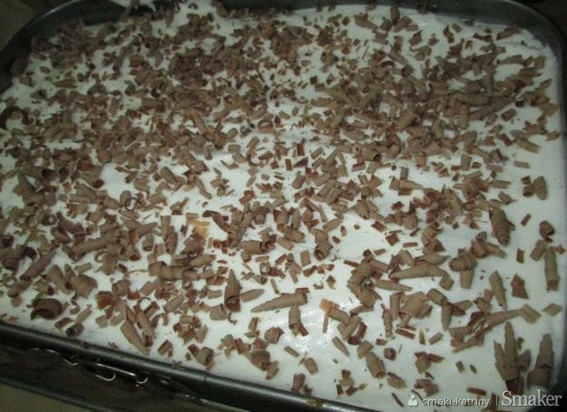 4. Wylej mix na ciasto, wyrównaj, a następnie posyp czekoladą i schłódź w lodówce przez całą noc.