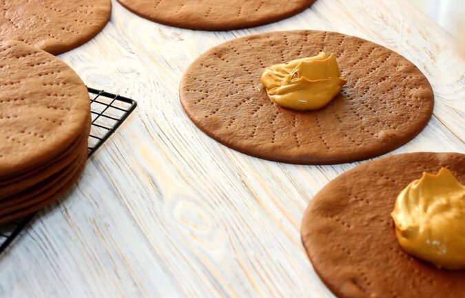 1. Ciasto zagnieść w następującej kolejności: jajka połączyć z miodem, dodać masło, sodę, kakao i mąkę. A także sok z cytryny i cukier.