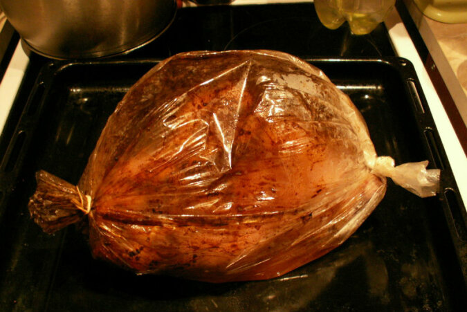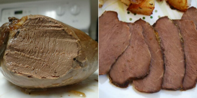 W rezultacie otrzymałam doskonałe danie mięsne, które smakuje jak gotowana wieprzowina. Część została pocięta i podana na świąteczny stół, a pozostała część została zawinięta w pergamin i włożona do lodówki. Używaliśmy go do kanapek.