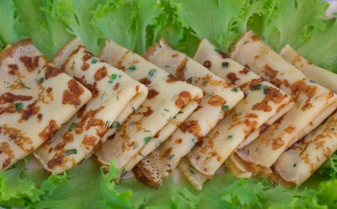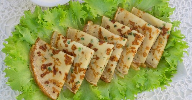 Wyśmienite dietetyczne naleśniki z zieleniną są już gotowe! Jedyne 130 kcal na 100 g. Gorące naleśniki zwiń delikatnie w koperty i szybko podaj do stoły - są bardzo delikatne i aromatyczne.