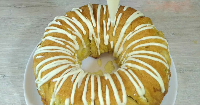 Piecz ciasto w 180 stopniach przez 40 minut. Wypiek przykryj talerzem, odwróć i wyjmij z formy.