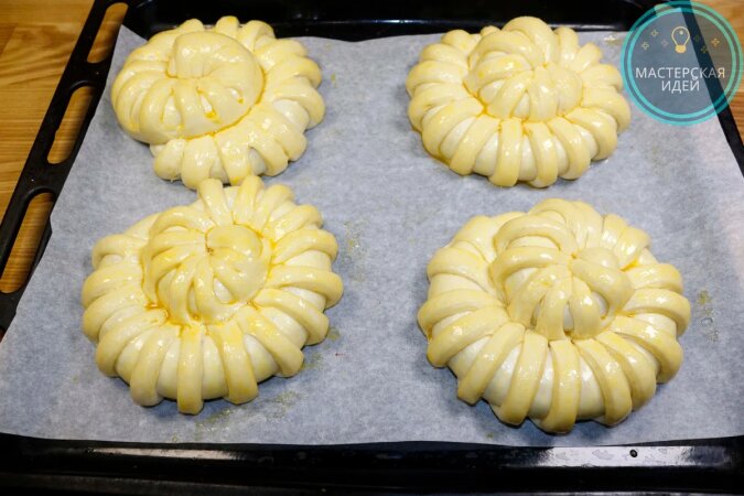 Smaruję bułeczki żółtkiem i wstawiam je do piekarnika nagrzanego do 180 stopni na około 25-30 minut (bierzcie pod uwagę cechy piekarnika).