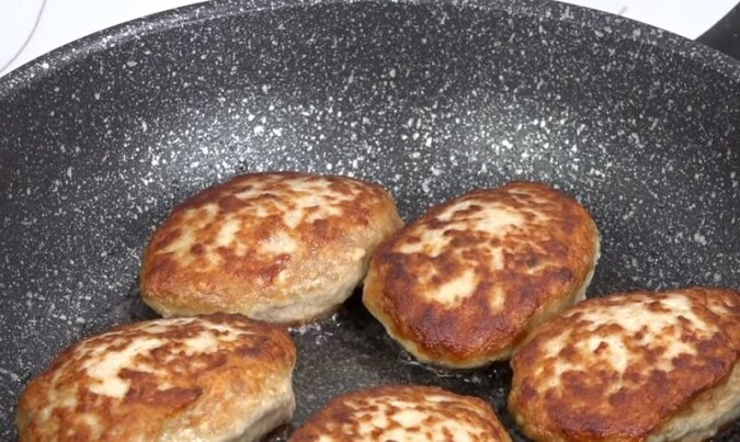 6. Ze schłodzonego w lodówce mięsa mielonego należy uformować kotlety. Smażyć kotlety na dużym ogniu na rozgrzanym oleju przez około 2 minuty z każdej strony. Następnie zmniejszyć ogień, przykryć patelnię pokrywką i dosmażyć je na średnim ogniu przez kolejne 4–5 minut.
