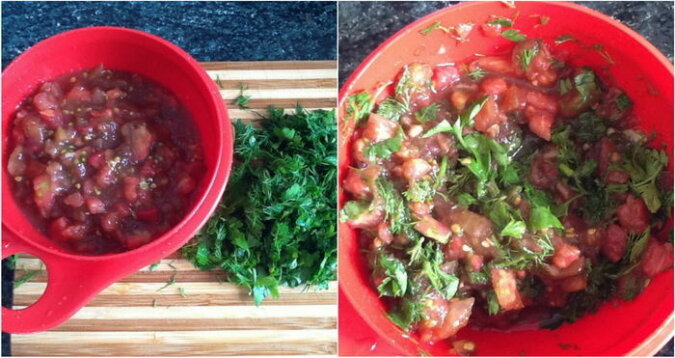 Nadszedł czas, aby zacząć przygotowywać ten składnik, którego wiele gospodyń domowych po prostu nie pomyślałoby o dodaniu do kotletów (a właśnie szkoda!). To zwykły pomidor. Na 700 g mielonego mięsa potrzebne są 2-3 pomidory, należy zdjąć z nich skórkę i zmielić w blenderze lub zmielić w maszynce do mięsa z dodatkiem ziół.