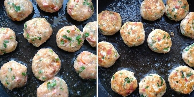 Na patelni rozgrzej oliwę, a następnie dodaj do niej masło. Z mięsa mielonego przygotuj kotleciki wielkości orzecha włoskiego. Smaż je z każdej strony przez 3-4 minuty.
